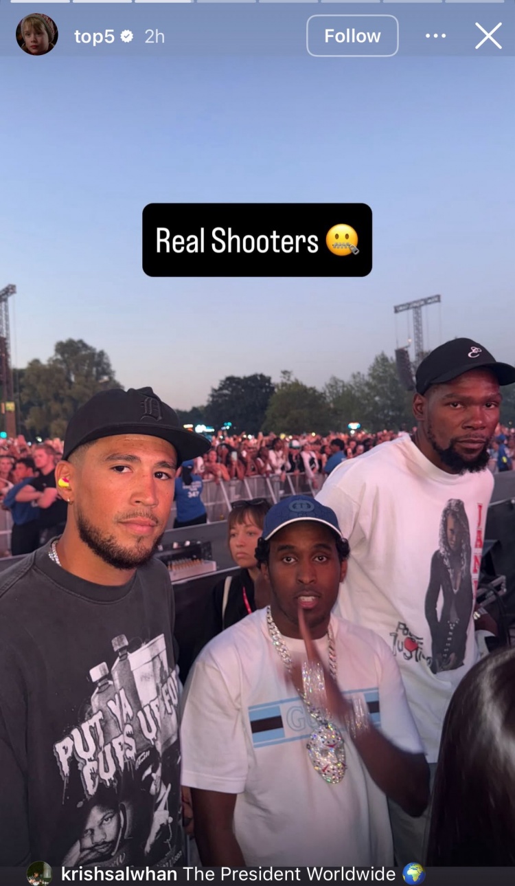 还搁一块呢😁杜兰特与前队友布克同框现身伦敦Wireless音乐节